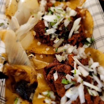 (3) Brisket or Pastor served with cilantro and grilled onion.