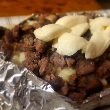 Sides- Halved Corn on the Cob, Vegetables of the day, Baked Potato, Rice, Charro Beans